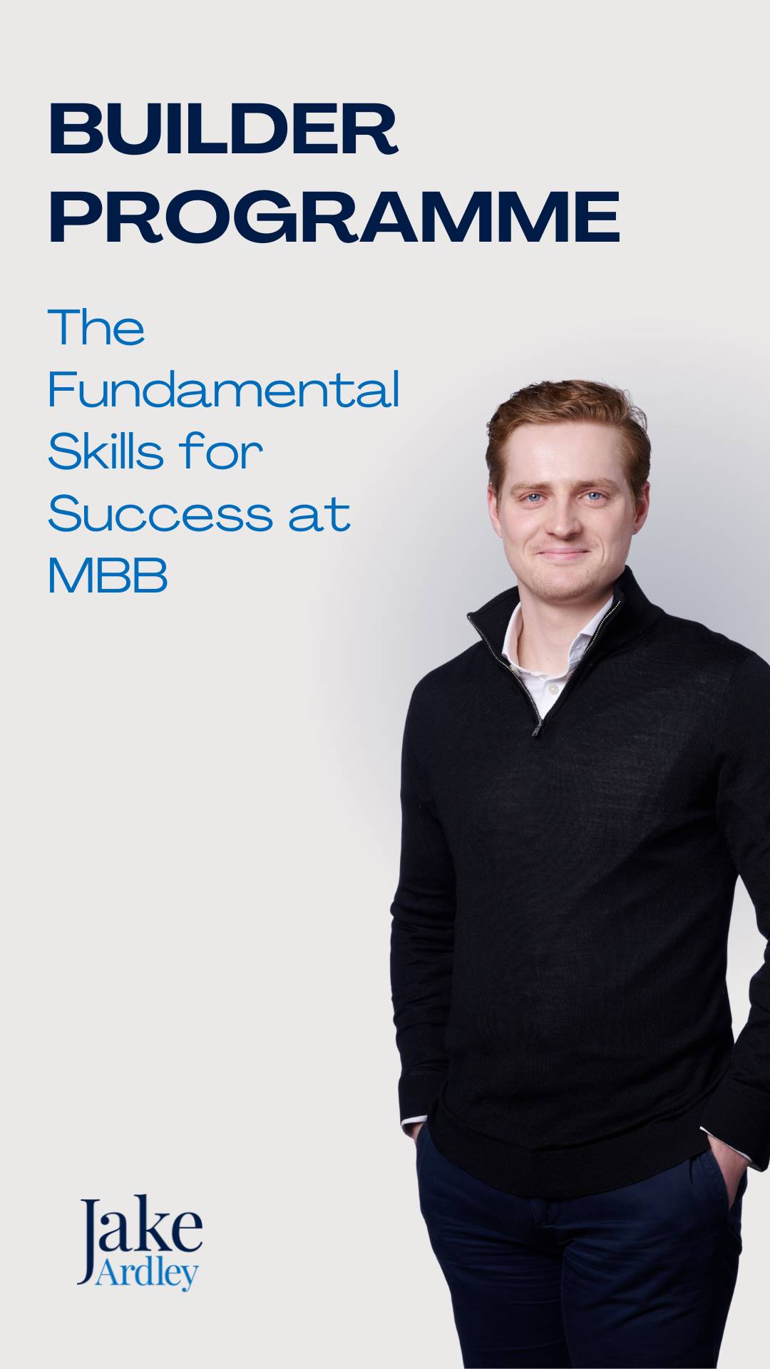 The Builder Programme is a comprehensive entry-point to foundational skills taught at McKinsey, BCG, and Bain.